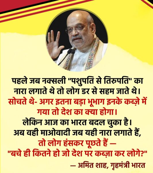 लेकिन आज का भारत बदल चुका है। माओवादियों की ताकत टूट चुकी है, और उनकी धमकियाँ अब लोगों को डराती नहीं बल्कि हंसी का कारण बनती हैं। आज जब वही नारे लगाए जाते हैं तो देशवासी मुस्कुराकर पूछते हैं- “बचे ही कितने हो जो देश पर कब्ज़ा कर लोगे?” यह नया भारत है, जहाँ आतंक और हिंसा की जगह राष्ट्रभक्ति और सुरक्षा की गूंज सुनाई देती है।