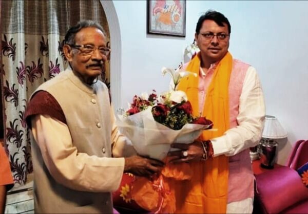 खंडूरी से भेंट करते हुए धामी ने कहा कि आज होली के शुभ अवसर पर प्रदेश के पूर्व मुख्यमंत्री व भाजपा के वरिष्ठ नेता आदरणीय भुवन चंद्र खंडूरी से उनके आवास पर भेंट कर उन्हें शुभकामनाएं दी।