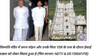 बेटे की सरकार में तिरुपति की रसोई में ‘बीफ की घुसपैठ’, पिता के शासन में इसी मंदिर में क्रॉस वाले स्तंभ पर हुआ विवाद: तब YSR, अब जगनमोहन आखिर हिन्दू मंदिरों के प्रति ऐसी मानसिकता क्यों!, आज का पंचाग आपका राशि फल