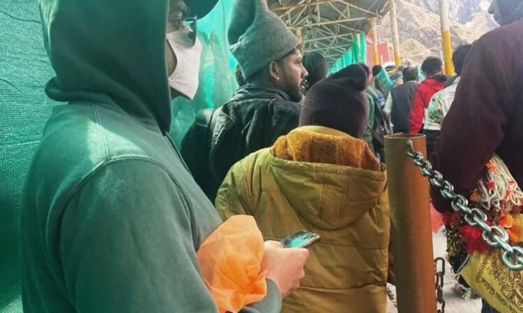 ✍️हरीश मैखुरी पंक्ति में मास्क पहने जो दिख रहे हैं ये चमोली के जिलाधिकारी हिमांशु खुराना हैं वे भगवान बद्रीनाथ के दर्शन के लिए