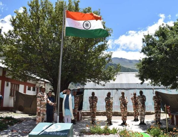 मुख्यमंत्री श्री पुष्कर सिंह धामी ने बुधवार को सीमांत गांव मलारी में भारतीय सेना, आईटीबीपी (हिमवीर), सीमांत सडक संगठन (शिवालिक) के जवानों और द्वितीय रक्षा पंक्ति के रूप में सीमांत गांव के निवासियों के साथ हर घर तिरंगा कार्यक्रम में प्रतिभाग किया और सभी का हौसला बढाते हुए आजादी के अमृत महोत्सव की बधाई दी। हर घर तिरंगा कार्यक्रम को लेकर सेना के जवानों और सीमांत गांवों के निवासियों में जबरदस्त उत्साह और उमंग दिखा। सीमांत गांव मलारी में आयोजित हर घर तिरंगा कार्यक्रम में सेना के जवानों के साथ ही सीमांत गांव कैलाश पुर, महरगांव, कोषा, द्रोणागिरी, नीति, बांम्पा, गमशाली, फरकिया, झेलम, जुम्मा, कागा, गरपक, मलारी के लोगों ने हर्षोल्लास से प्रतिभाग लिया।