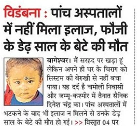 बागेश्वर में एक मासूम बच्चे की चिकित्सा सुविधा के अभाव में मृत्यु का समाचार अत्यंत पीड़ादायक और दुर्भाग्यपूर्ण है।