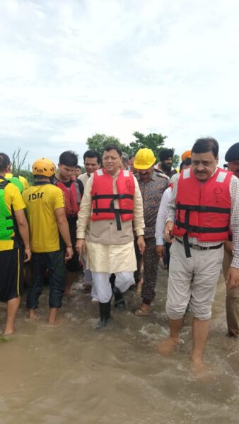 मुख्यमंत्री श्री पुष्कर सिंह धामी ने बृहस्पतिवार को जनपद हरिद्वार की तहसील लक्सर के विभिन्न क्षेत्रों-लक्सर बजार मदारपुर, शाहपुर बस्ती, प्रहलादपुर, हस्तमौली में अतिवृष्टि एवं सोनाली नदी के कारण हुये जल भराव से प्रभावित क्षेत्रों का रेस्क्यू बोट एवं ट्रैक्टर में बैठकर स्थलीय निरीक्षण किया।