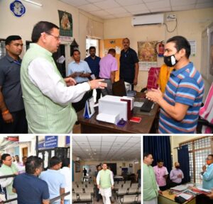 मुख्यमंत्री श्री पुष्कर सिंह धामी ने आज प्रातः राजपुर रोड स्थित आर टी ओ कार्यालय पर छापा मारा। औचक निरीक्षण के दौरान मुख्यमंत्री ने पाया की आर टी ओ कार्यालय में आम जनता अपने वाहनों से संबंधित कार्यों के लिए सुबह 9 बजे से मौजूद थी लेकिन कार्यालय में कुछ कर्मचारियों को छोड़कर आर टी ओ के मुख्य अधिकारी दिनेश चंद्र पिठोई और काफी कर्मचारी सुबह के 10:30 होने के बावजूद मौजूद नहीं थे ।