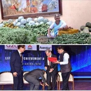 और अरबपति नारायण मूर्ति ,रतन टाटा के पैर छूते हुए।