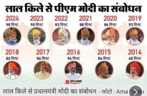 *नई दिल्ली:* पीएम मोदी के स्वतंत्रता दिवस संबोधन की खास बातें पीएम मोदी ने लाल किले की प्राचीर से देश को संबोधित कहा कि जब देश की सशस्त्र सेनाएं ‘सर्जिकल स्ट्राइक’ और हवाई हमले करती हैं, तो हर भारतीय गर्व से भर जाता है. पहले लोग बदलाव चाहते थे लेकिन उनकी आकांक्षाओं पर ध्यान नहीं दिया गया; हमने जमीनी स्तर पर बड़े सुधार किए.पीएम मोदी ने लाल किले से कहा कि जन जीवन मिशन के तहत 12 करोड़ नए परिवारों को नल से जल पहुंच रहा है. 15 करोड़ परिवार आभार्थी हैं. बिजली और पानी जैसी व्यय्वस्थाओं से कौन वंचित रह गया है. समाज के अग्रिम पंक्ति के लोग इसके अभाव में नहीं थे. मेरे दलित, मेरे पीड़ित, मेरे शोषित, मेरे आदिवासी भाई बहन, मेरे गरीब भाई बहन, मेरे झुग्गी झोपड़ी में रहने वाला भाई बहन इन चीजों के अभाव में जी रहे थे. हमारी सरकार ने उनकी प्राथमिक जरूरतों के लिए कोशिश की.लाल किले से अपने संबोधन में पीएम मोदी ने कहा कि हमारा एक ही संकल्प है नेशन फर्स्ट. हमनें बैंकिंग सेक्टर में सुधार के लिए कई बड़े बदलाव किए. हमारी सरकार बड़े रिफॉर्म्स के लिए प्रतिबद्ध है. आज हमने गवर्नेंस के मॉडल को बदला है. सरकार खुद लाभार्थियों के पास जाती है.10 साल में नौजवानों का आत्मविश्वास बढ़ा है. ये भारत के लिए गोल्डन एरा है, ये मौका हमें जाने नहीं देना चाहिए.पीएम मोदी ने कहा कि आज 10 करोड़ बहनें आत्मनिर्भर बनीं हैं. हमनें स्पेस सेक्टर में बहुत सुधार किए हैं. आज प्राइवेट सेटेलाइट, रॉकेट लॉन्च हो रहे हैं. हम इज ऑफ लिविंग औऱ इज ऑफ डूइंग पर भी काम कर रहे हैं. बीते दस साल में गांव में स्कूल बनाने की बात हो, हाइवे बनाने की हो, अस्पताल बनाने की बात, मेडिकल का काम हो. हमने इन सेक्टर में अभूतपूर्व काम किया है.प्रधानमंत्री मोदी ने बैंकिंग क्षेत्र में सुधारों की सराहना करते हुए कहा कि भारतीय बैंकों की गिनती अब दुनिया के सबसे मजबूत बैंकों में की जाती है. हमारे द्वारा चुना गया सुधार का मार्ग विकास का खाका बन गया है. पहले लोग सुविधाओं के लिए सरकार से गुहार लगाते थे, अब उन्हें सुविधाएं दरवाजे पर मिलती हैं. देश का युवा धीमी गति से नहीं चलना चाहता, यह हमारा स्वर्णिम युग है.पीएम मोदी ने कहा कि बैंकिंग क्षेत्र में जो रिफॉर्म हुआ…आप सोचिए बैंकिंग सेक्टर का पहले क्या हाल था, ना विकास होता था, ना विस्तार होता था, ना विश्वास बढ़ता था…हमने बैंकिंग सेक्टर में अनेक रिफॉर्म किए। आज विश्व के सबसे मजबूत बैंकों में हमारे बैंकों ने अपना स्थान बनाया। जब बैंकिंग मजबूत होती है तो अर्थव्यवस्था की ताकत भी बढ़ती है.पीएम मोदी ने कहा, ‘‘आज तो हम 140 करोड़ हैं. अगर 40 करोड़ देशवासी गुलामी की जंजीरों को तोड़ सकते हैं, आजादी के सपने को पूर्ण कर सकते हैं, आजादी लेकर दिखा सकते हैं तो 140 करोड़ देशवा