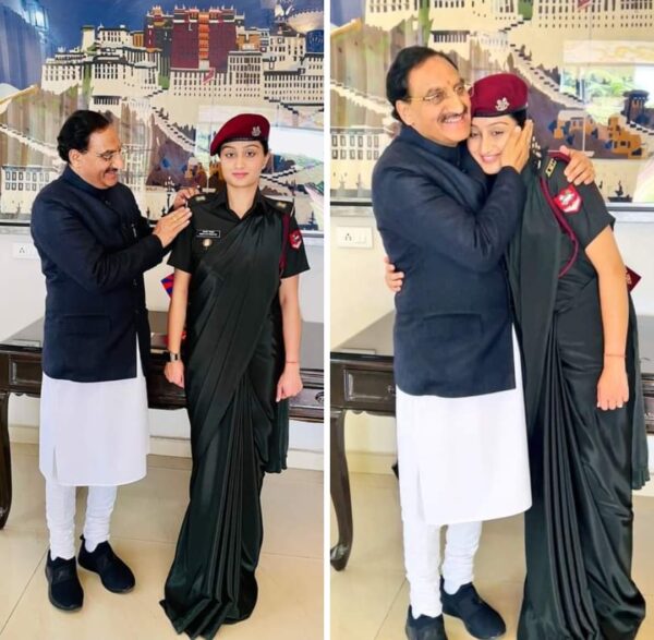 देवभूमि उत्तराखंड वीर-प्रसूता भूमि है। यहां औसतन प्रत्येक परिवार से एक व्यक्ति सेना में भर्ती होकर राष्ट्र को अपनी सेवाएं समर्पित करता है। आज के शुभ दिन पर उत्तराखंड के पूर्व मुख्यमंत्री और हरिद्वार सांसद डाॅ निशंक ने कहा कि यह हर्ष का विषय है कि मेरी बेटी ने देवभूमि की इस स्वर्णिम एवं गौरवपूर्ण परंपरा को आगे बढ़ाया है। उन्होंने कहा कि अब उत्तराखण्ड की बेटियां जीवन के प्रत्येक क्षेत्र में पुरुषों के साथ कंधे से कंधा मिलाकर समाज तथा राष्ट्र को आगे बढ़ा रही हैं।