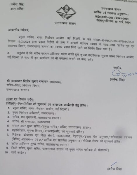 अब आईएएस दिलीप जावलकर उत्तराखंड के नए गृह सचिव होंगे