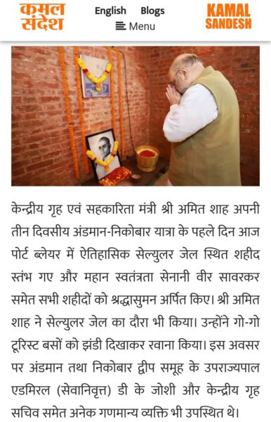 स्वातंत्र्यवीर सावरकर की कालापानी में सैल्यूलर जेल में दो बार आजीवन कारावास से लेकर संसार की श्रेष्ठ संसद तक की गैलरी तक के वृतांत पर एक विहंगम दृष्टि