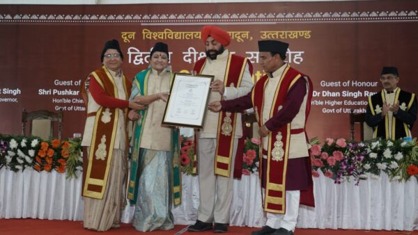 दून विश्वविद्यालय ने हंस फाउंडेशन की माता मंगला और महंत देवेंद्र दास को डीलिट् की उपाधि से किया विभूषित, दीक्षांत समारोह में राज्यपाल ने 93 छात्रों को स्वर्ण पदक और 2102 छात्रों को भी उपाधियाँ दी Doon University honored Hans Foundation’s Mata Mangala and Mahant Devendra Das with DLité degrees, at the convocation, the Governor gave gold medals to 93 students and degrees to 2102 students