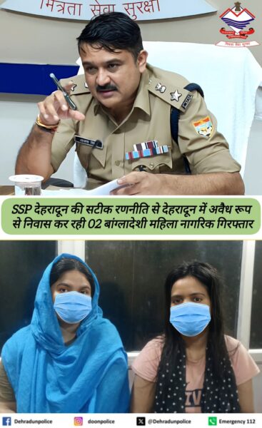 दून पुलिस कप्तान की सटीक रणनीति से देहरादून में अवैध रूप से निवास कर रही 02 बांग्लादेशी महिला नागरिक गिरफ्तार🔗