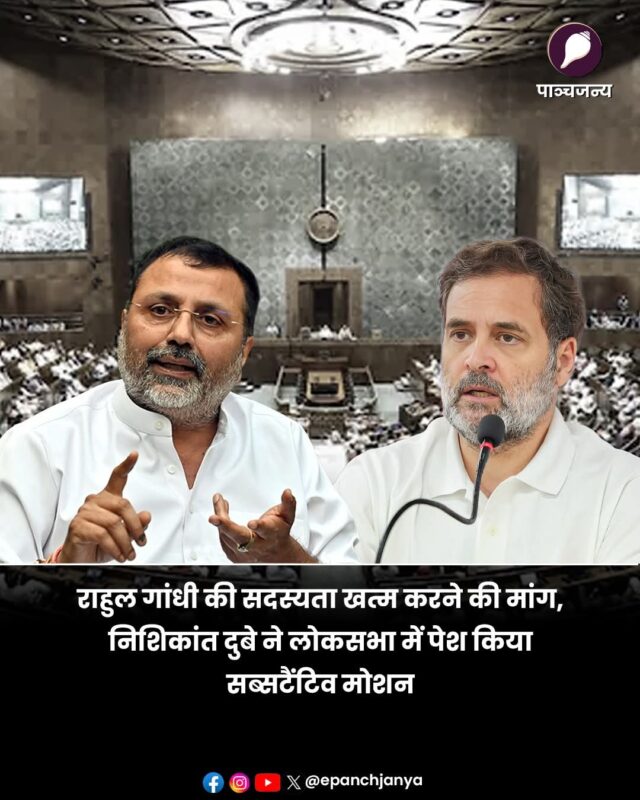 कांग्रेस सांसद राहुल गांधी लगातार असंवैधानिक शब्दों का प्रयोग करते हुए प्रधानमंत्री नरेंद्र मोदी के खिलाफ न केवल बयानबाज़ी कर रहे हैं, बल्कि हाल ही में अमेरिका के साथ हुए ट्रेड डील को लेकर भी झूठ फैला रहे हैं। इस पर अब भाजपा सांसद निशिकांत दुबे ने कांग्रेस नेता और लोकसभा में विपक्ष के नेता राहुल गांधी की संसदीय सदस्यता समाप्त करने और उन्हें उम्रभर चुनाव लड़ने से रोकने की मांग को लेकर एक ‘सबस्टैंटिव मोशन’ पेश किया है।