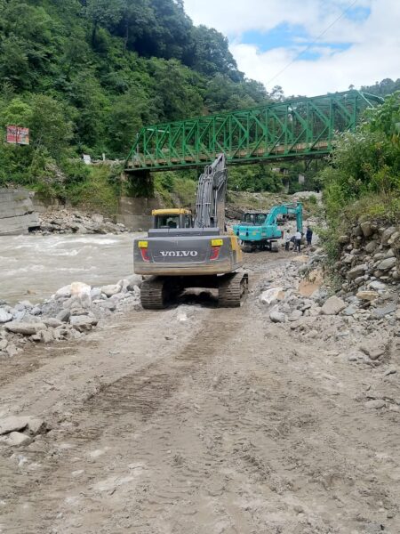 मानसून सीजन में केदार घाटी में हो रही भारी बारिश के कारण मंदाकिनी नदी उफान पर है। नदी के लगातार तेज बहाव के चलते श्री केदारनाथ धाम यात्रा मार्ग के बेहद महत्वपूर्ण पुल कुंड के आधार को क्षति पहुंची है। जिलाधिकारी सौरभ गहरवार ने स्थलीय निरीक्षण कर पुल की सुरक्षा के हर संभव प्रयास करने के निर्देश राष्ट्रीय राजमार्ग को दिए थे। इसी क्रम में अधिशासी अभियंता राष्ट्रीय राजमार्ग निर्भय सिंह ने पुल के आधार को मजबूत करने के लिए कंक्रीट दीवार का निर्माण करने योजना तैयार की। मौके पर तैनात कनिष्ट अभियंता पुष्कर सिंह बिष्ट ने बताया कि दो दिनों में नदी के बहाव को पुल के आधार पर न्यूनतम करने के लिए बोल्डर एवं मिट्टी का सहारा लिया गया है। वहीं दूसरी ओर से पोकलैंड की सहायता से रास्ता तैयार कर आधार पर कंक्रीट की दीवार देकर पुल को सुरक्षित करने का प्रयास किया जा रहा है। बताया कि गुरुवार तक कंक्रीट की दीवार देने का कार्य पूर्ण हो जाएगा नदी का बहाव अत्यधिक तेज न हुआ तो एक हफ्ते के भीतर पैदल यात्रियों के लिए पुल खोला जा सकता है।