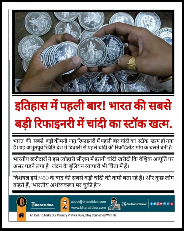 इतिहास में पहली बार — भारत की सबसे बड़ी कीमती धातु रिफाइनरी में चांदी का स्टॉक समाप्त!