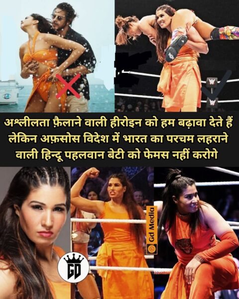 हरियाणा जिंद की कविता भारतीय वस्त्रों में WWE रिंग में उतरती हैं और कुश्ती महारथियों को धूल चटा कर देश का नाम उजागर करती हैं