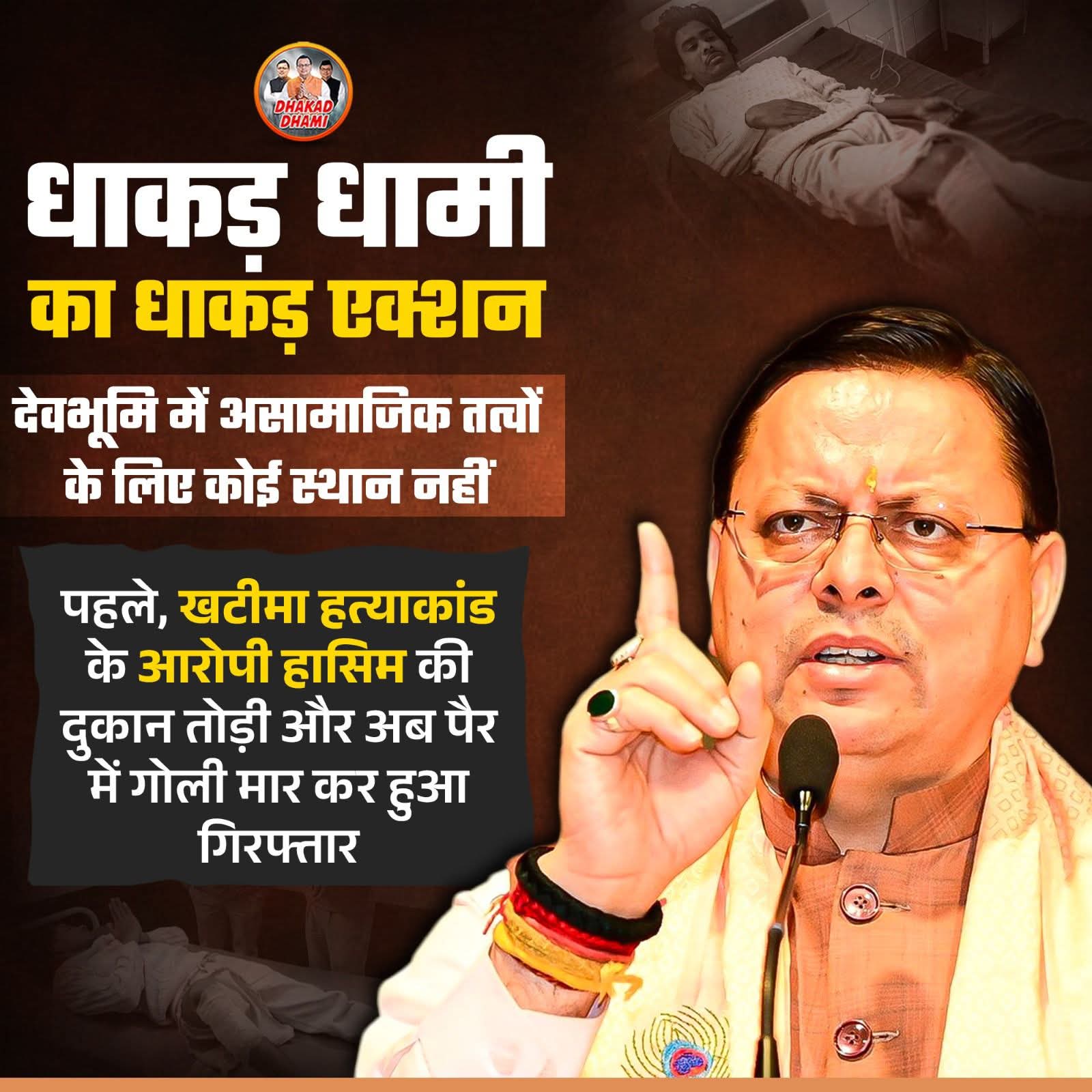 खटीमा क्षेत्र में हुई हत्या का मुख्य आरोपी हाशिम मुठभेड़ के बाद गिरफ्तार, पैर में लगी गोली, रोडवेज बस स्टेशन के सामने हुई सनसनीखेज हत्या का पुलिस ने किया खुलासा, नामजद आरोपी पुलिस मुठभेड़ में घायल, अवैध तमंचा व कारतूस बरामद, कोतवाली खटीमा क्षेत्र में हुई हत्या की गुत्थी को पुलिस ने त्वरित और निर्णायक कार्रवाई के साथ सुलझा लिया है। दिनांक 12 दिसंबर 2025 को रोडवेज बस स्टेशन के सामने मारपीट की घटना में गंभीर रूप से घायल युवक तुषार की उपचार के दौरान मृत्यु हो गई थी, जबकि उसके दो साथी गंभीर रूप से घायल हुए थे। इस मामले में मृतक के परिजन की तहरीर पर थाना खटीमा में मुकदमा दर्ज किया गया था, प्रभारी निरीक्षक खटीमा बिजेन्द्र शाह के नेतृत्व में गठित पुलिस टीम ने आरोपी की तलाश तेज की। इसी क्रम में दिनांक 13और 14 दिसंबर की रात मुखबिर की सूचना पर कस्बा झनकट स्थित ईंट भट्ठे के पास घेराबंदी की गई। पुलिस द्वारा आत्मसमर्पण के लिए कहे जाने पर आरोपी हाशिम ने जान से मारने की नीयत से फायरिंग शुरू कर दी। जवाबी कार्रवाई में आरोपी के दाहिने पैर में गोली लगी और उसे काबू कर लिया गया, तलाशी के दौरान आरोपी के कब्जे से 315 बोर का एक अवैध तमंचा और दो जिंदा कारतूस बरामद किए गए। घायल आरोपी को प्राथमिक उपचार के लिए नानकमत्ता अस्पताल ले जाया गया, जहां से जिला चिकित्सालय रुद्रपुर रेफर किया गया। फिलहाल आरोपी पुलिस अभिरक्षा में उपचाराधीन है।