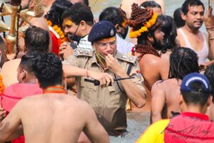 महाकुंभ पर्व 2021 में मौनी आमावास्या के पर प्रस्तुत तस्वीर तैरती देख में शौर्य से भर आया। फोटो में देखा की अपनी ड्यूटी में तैनात पुलिस अधिकारी मणिकांत मिश्रा गंगा में डुबकी लगा रहे संत-महात्माओं के बीच कर्तव्य परायणता निभा रहे हैं। इसी पहचान तो उत्तराखंड पुलिस की भिन्न है वास्तव में यह तस्वीर अविस्मरणीय और अनुकरणीय हैं।