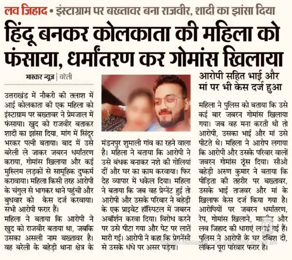 भरकर पत्नी बताया। बाद में उसे बरेली ले जाकर जबरन धर्मांतरण कराया, गोमांस खिलाया और कई मुस्लिम लड़कों से सामूहिक दुष्कर्म करावाया।