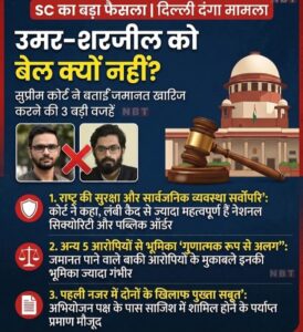 दिल्ली दंगा प्रकरण सुप्रीम कोर्ट का बड़ा निर्णय, उमर खालिद और शरजील इमाम को जमानत नहीं।