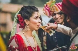 वेस्टर्न की नकल कर हिंदू दूल्हा-दुल्हन शैम्पेन की बॉटल खोल रहे हैं, आलिंगन के दृश्य दे रहे हैं या मंडप में किस कर रहे हैं।