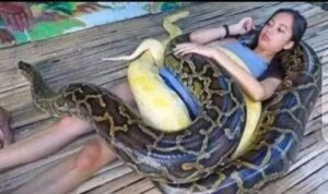 दरअसल अजगर अपने आप को लगातार बड़ा कर रहा है। वह इसलिए कुछ नहीं खा रहा ताकि उसके पेट में महिला को खाने और पचाने की जगह हो।