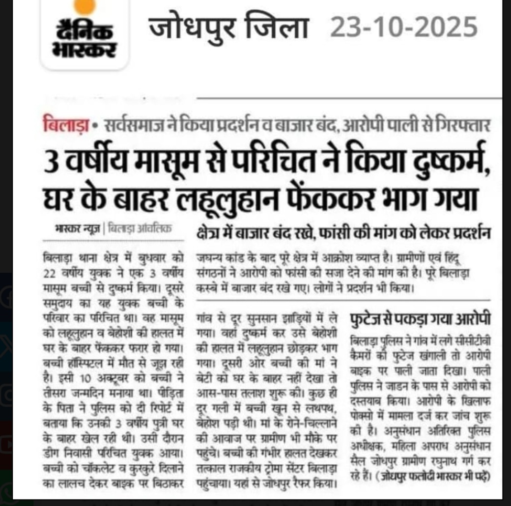 28 मार्च 2025 के दिन बिहार के दरभंगा में SC/ST एक्ट लगाने की धमकी देकर 10 दरिंदों ने मिलकर एक ओबीसी नाबालिग बच्ची का बलात्कार किया।