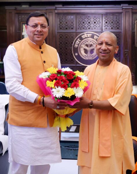 मुख्यमंत्री श्री पुष्कर सिंह धामी ने मंगलवार को लखनऊ में उत्तर प्रदेश के मुख्यमंत्री योगी आदित्यनाथ जी से शिष्टाचार भेंट की। इस अवसर पर उन्होंने प्रभु बदरी विशाल जी की प्रतिमा और प्रदेश में उत्पादित श्रीअन्न से बने उत्पाद उपहार स्वरूप प्रदान किए। मुख्यमंत्री ने उत्तर प्रदेश के मुख्यमंत्री से उत्तराखण्ड एवं उत्तर प्रदेश के मध्य आस्तियों एवं दायित्वों के विभाजन संबंधी विभिन्न विषयों पर भी चर्चा की।