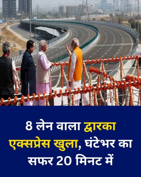 दिल्ली से गुरुग्राम अब कुछ मिनटों में पहुंच सकेंगे. लगभग 11,000 करोड़ रुपये की लागत से बनी द्वारका एक्सप्रेसवे शुरु हो गया है, इतना ही नही आज भारत के सबसे पहले 8 लेन के अर्बन एलिवेटेड एक्सप्रेसवे की शुरुआत हो गई है. खुशी की बात यह है की अब दिल्ली से गुरुग्राम जाने में 1 घंटे की जगह 20 मिनट लगेगा। मोदी युग भारत का स्वर्णिम काल