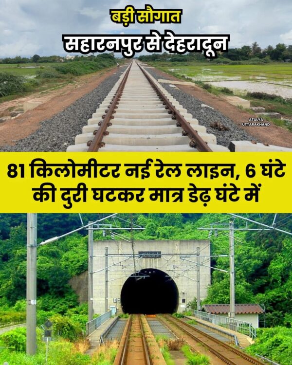 यह नया रेल मार्ग देहरादून में हर्रावाला और सहारनपुर में शाकंभरी देवी को जोड़ेगा। इस रूट पर शिवालिक की पहाड़ियों के बीच से 11 किलोमीटर लंबी सुरंग और 106 पुलों का निर्माण किया जाएगा। यह परियोजना न केवल यात्रा को सुगम बनाएगी बल्कि क्षेत्र में कनेक्टिविटी को भी बेहतर करेगी।