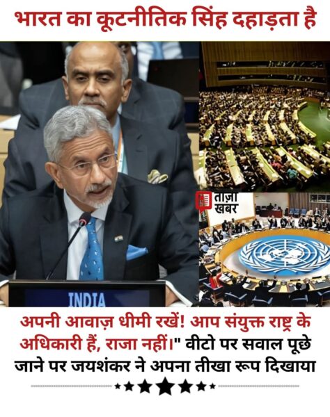 संयुक्त राष्ट्र के एक सत्र के समय, जब भारत के वीटो रुख के बारे में सवाल किया गया, तो विदेश मंत्री एस. जयशंकर ने अपना कड़ा और अडिग रुख दिखाया। उन्होंने दृढ़ता से कहा: “अपनी आवाज़ धीमी रखें! आप संयुक्त राष्ट्र के अधिकारी हैं, राजा नहीं।”