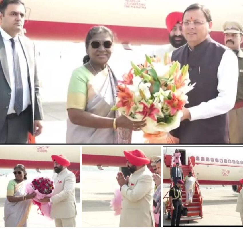 राष्ट्रपति द्रौपदी मुर्मु पहुंची जोलीग्रांट एयरपोर्ट।