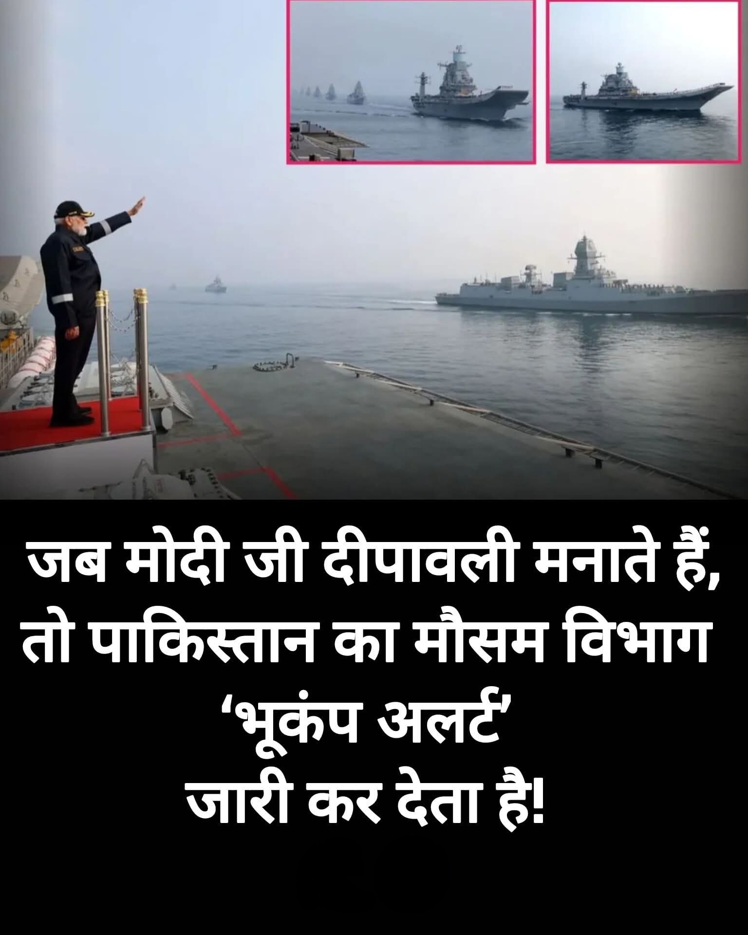 समंदर में तैनात भारतीय नौसेना के जहाजों के साथ मोदी जी का यह दृश्य देखकर संदेश स्पष्ट है कि अब दीपक की लौ सिर्फ घरों में नहीं, बल्कि दुश्मनों के देश में भी जलेगी है।