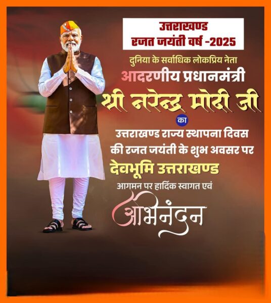 प्रधानमंत्री नरेंद्र मोदी आज उत्तराखंड राज्य स्थापना के रजत जयंती समारोह में होंगे मुख्य अतिथि उत्तराखंड को मिल सकती है तिब्बत सीमा के निकट कंथोली सैंण चमोली में सामरिक महत्व की हवाई पट्टी गैरसैंण स्थाई राजधानी की दिशा में बढ़ सकते हैं आगे,  उत्तराखंड की पावन धरा पर माननीय प्रधानमंत्री श्री नरेंद्र मोदी जी का हार्दिक स्वागत एवं अभिनंदन।🙏🙏