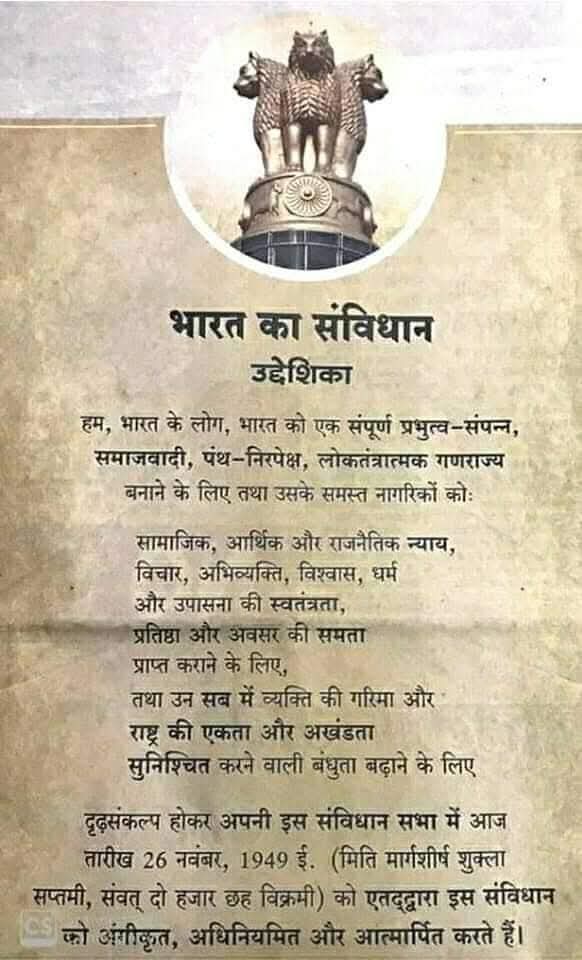 आज का दिन हमें संविधान की गरिमा, लोकतंत्र की शक्ति और राष्ट्रीय एकता का स्मरण कराता है। इस शुभ अवसर पर आइए संकल्प लें कि हम आदरणीय प्रधानमंत्री श्री नरेन्द्र मोदी जी के ‘विकसित भारत 2047’ के लक्ष्य को साकार करने के लिए एकजुट होकर परिश्रम, ईमानदारी, समर्पण के साथ एक सशक्त, समृद्ध और आत्मनिर्भर भारत के निर्माण में सहभागी बनेंगे।