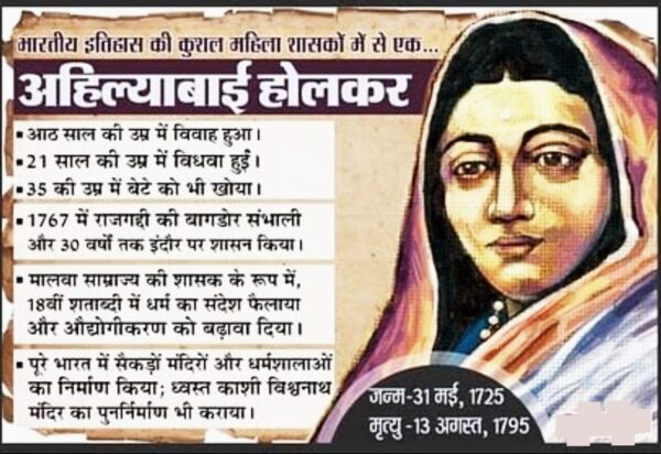 इंदौर धौलकर की महारानी अहिल्याबाई होल्कर न्यायप्रिय उदार महारानी थी 1754 में खंडेराव की युद्ध में वीरगति प्राप्त होने पर ससुर मल्हारराव होलकर के कहने पर अहिल्या देवी सती नहीं हुई जबकि अन्य 3 रानियां सती हो गईं। इसके बाद ससुर मल्हार राव ने बहू अहिल्या देवी को होलकर साम्राज्य का उत्तराधिकारी बनाया 1745 में अहिल्या देवी ने पुत्र को जन्म दिया, नाम रखा मालेराव। लेकिन वो भी असमय चल बसा फिर तो महारानी ने मन को सुदृढ़ कर एक योद्धा की भांति राज्य की भांति शाशन किया। वे अपना हर आदेश जय शिव शंकर लिख कर आरंभ करती थी ।