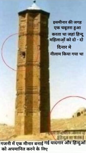 *गजनी कि वह मीनार जहां महमूद गजनवी भारत से 4 लाख हिन्दू महिलाओं/ लड़कियों को नग्नावस्था में गजनी ले गया था, और इस मीनार कि जगह पर स्थित चबूतरे पर 2 -2 दिनार में उनको नीलाम किया था!!*