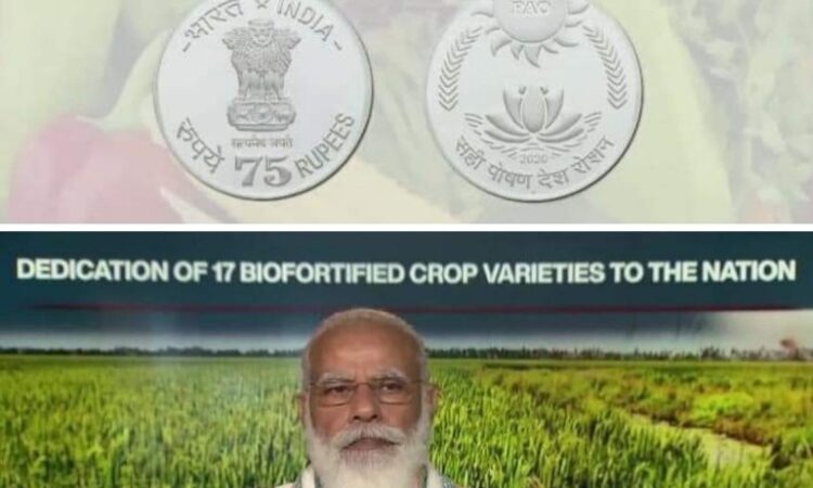 देश के प्रधानमंत्री श्री नरेन्द्र मोदी खाद्य एवं कृषि संगठन (FAO) की 75वीं वर्षगांठ के उपलक्ष्य में 75 रुपये का स्मारक सिक्का जारी करते हुए…कहा