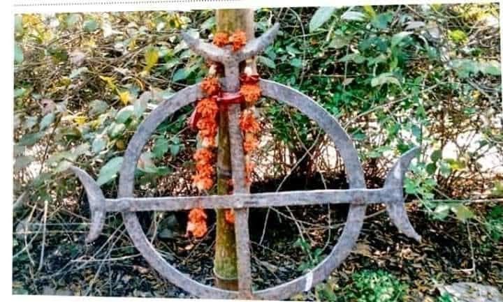 बताया जा रहा है कि चार सौ साल से बांस में बांध कर ही इस देव तीर को लटका कर रखा गया है.