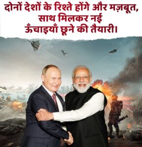 *4* दोनों नेताओं ने द्विपक्षीय एजेंडे में प्रगति की समीक्षा की और भारत और रूस के बीच विशेष एवं विशेषाधिकार प्राप्त रणनीतिक साझेदारी को और प्रगाढ़ बनाने की अपनी प्रतिबद्धता दोहराई। प्रधानमंत्री ने कहा कि वह 23वें भारत-रूस वार्षिक शिखर सम्मेलन के लिए राष्ट्रपति पुतिन का भारत में स्वागत करने के लिए उत्सुक हैं।