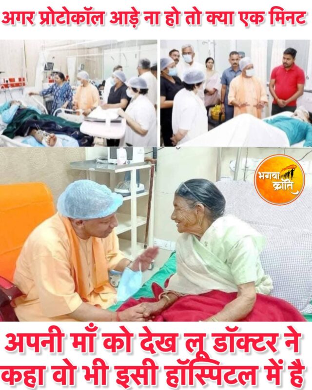 घटना पिछले साल 14 जून 2024 की है, जब रुद्र प्रयाग उत्तराखंड में यात्रियों से भरी एक बस अलकनंदा नदी में गिर गई थी जिसमे 14 यात्रियों की मौत हो गई थी और उत्तर प्रदेश के कुछ यात्री ऋषिकेश के अस्पताल में भर्ती थे,, योगी आदित्यनाथ उन घायलों को देखने उस अस्पताल में गए थे, जब योगी जी उन घायल यात्रियों को देख कर वापस आने लगे तो अस्पताल के डाक्टरों के एक स्टॉफ ने बताया की इसी अस्पताल में आप की माता जी भी पिछले एक सप्ताह से भर्ती हैं , तब योगी जी अपने साथ चल रहे अधिकारियों से पूछा अगर आप का प्रोटोकॉल मेरे आड़े ना आए तो क्या मैं एक मिनट अपनी मां को देख सकता हूं,, और फिर वो अपनी मां से मिले।जय श्री राम 🚩(साभार)