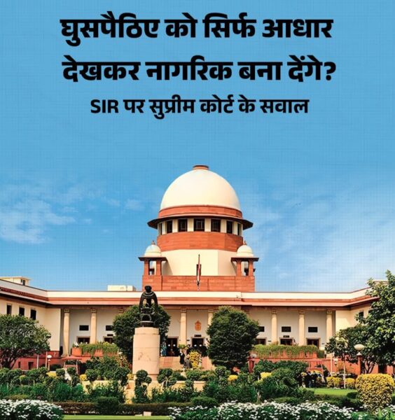 देशभर में चल रहे वोटर लिस्ट के स्पेशल इन्टेंसिव रिवीजन को चुनौती देने के लिए घुसपैठियों के पैरोकारों व विपक्षियों द्वारा प्रस्तुत याचिकाओं पर सुनवाई करते हुए #सुप्रीम_कोर्ट ने #घुसपैठियों के विषय पर चिंता जताई है। SIR सुनवाई के मध्य सुप्रीम कोर्ट ने कहा कि क्या आधार कार्ड होल्डर होने से किसी गैर भारतीय को भी चुनाव में शामिल होने का अधिकार देना चाहिए? कोर्ट ने कहा कि आधार का उदेश्य सभी लोगों तक सामाजिक कल्याण लाभ पहुंचाना है, लेकिन ये वोट का अधिकार नहीं दे सकता।