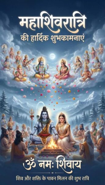 समस्त सनातन धर्म संस्कृति प्रेमियों को महाशिवरात्रि भगवान महादेव व माता पार्वती के विवाह वर्षगांठ की मंगल शुभकामनायें,आज ही के दिन भगवान महादेव व माता पार्वती का विवाह उत्तराखंड के रुद्रप्रयाग जिले के सोनप्रयाग के निकट त्रियुगीनाराण नामक जगह पर यह विवाह स्वयं ब्रह्मा जी ने संपन्न करवाया था जहां पर सतयुग से जो अग्नि प्रज्वलित हुई थी वही अग्नि आज भी प्रज्वलित है और लोग वहां पर जाकर के अपने विवाह को उसी विवाह मंडप में संपन्न करते हैं। भगवान महादेव व माता पार्वती आपके जीवन में सुख समृद्धि ऐश्वर्या से पूर्ण करें,आप निरंतर प्रगति पथ पर अग्रसर हो यही भगवान से आपकी मंगल कामना करते हैं।