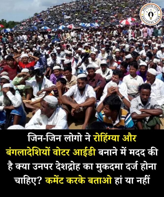 “जिन-जिन लोगो ने रोहिंग्या और बंगलादेशियों वोटर आईडी बनाने में मदद की है क्या उनपर देशद्रोह का मुकदमा दर्ज होना चाहिए? कमेंट करके बताओ हां या नहीं” 🔥 (साभार फेसबुक)