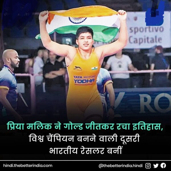 प्रिया ने इससे पहले साल 2017 और 2021 में अंडर-17 विश्व चैंपियनशिप भी अपने नाम किया था। और इसी साल हुई अंडर-20 रेसलिंग चैंपियनशिप में देश के लिए सिल्वर मेडल जीता। इस ऐतिहासिक जीत के लिए भारत की स्टार एथलीट प्रिया मालिक को बधाई!