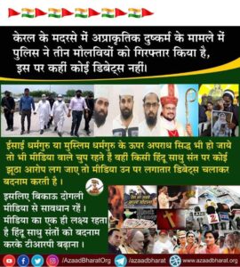 *🚩ईसाई धर्मगुरु या मुस्लिम धर्मगुरु के ऊपर अपराध सिद्ध भी हो जाये तो भी मीडिया वाले चुप रहते हैं वहीं किसी हिंदू साधु संत पर कोई झूठा आरोप लग जाए तो मीडिया उन पर लगातार डिबेट्स चलाकर बदनाम करती है ।*