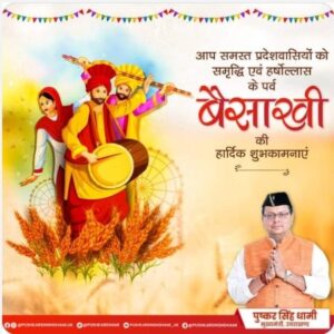 वैशाखी पर्व पर उत्तराखंड के मुख्यमंत्री पुष्करसिंह धामी ने समस्त प्रदेश वासियों को बधाई और शुभकामनाएं देते हुए कहा राज्य को देश का अग्रणी प्रान्त बनाने के लिए आप सबका सहयोग और आशीर्वाद मिले ऐसी कामना है।