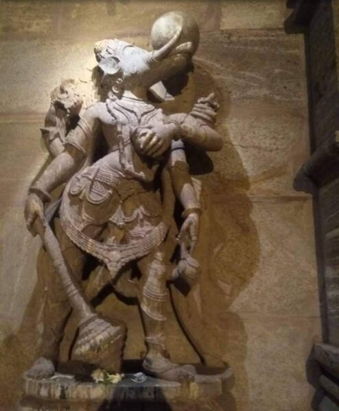 तनिक ध्यान से देखें आप इस मूर्ति को। यह विष्णु भगवान के वराह अवतार की है जिसमे वह पृथ्वी को समुद्र में से निकालते हुए दिखाए गए है।
