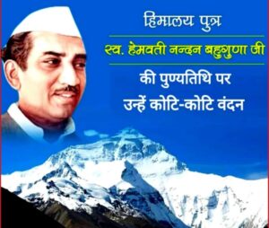 उत्तराखंड के मुख्यमंत्री तीरथसिंह रावत ने हिमालय पुत्र स्वर्गीय हेमवती नंदन बहुगुणा जी को उनकी पुण्य तिथि पर भावभीनी श्रद्धांजलि और शत-शत नमन अर्पित किया। उन्होंने कहा कि बहुगुणा अपने नैतिक मूल्यों, सिद्धांतों एवं आदर्शों पर हमेशा अडिग रहे। वे सच्चे राजनेता, समाजसेवी और पहाड़ के हितों के लिए सोचने वाले व्यक्ति थे। उनके विचार हम सभी को आगे बढ़ने की प्रेरणा देते हैं और देते रहेंगे।