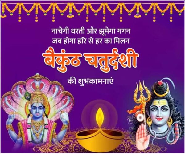📝 *भावार्थ* 👉🏾 कार्तिकमासके शुक्लपक्षकी चतुर्दशी *वैकुण्ठचतुर्दशी* कहलाती है, वैकुण्ठचतुर्दशीको वैकुण्ठाधिपति भगवान् श्रीविष्णुक़ी पूजाकी जाती है।