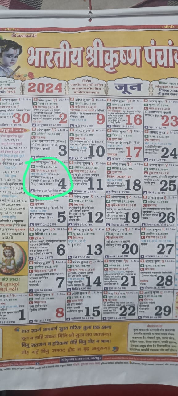 इस पंचांग कैलेंडर में तो कभी से लिख दिया था,*4 जून हिन्दू साम्राज्य दिवस..!!!*🤔😊🎊